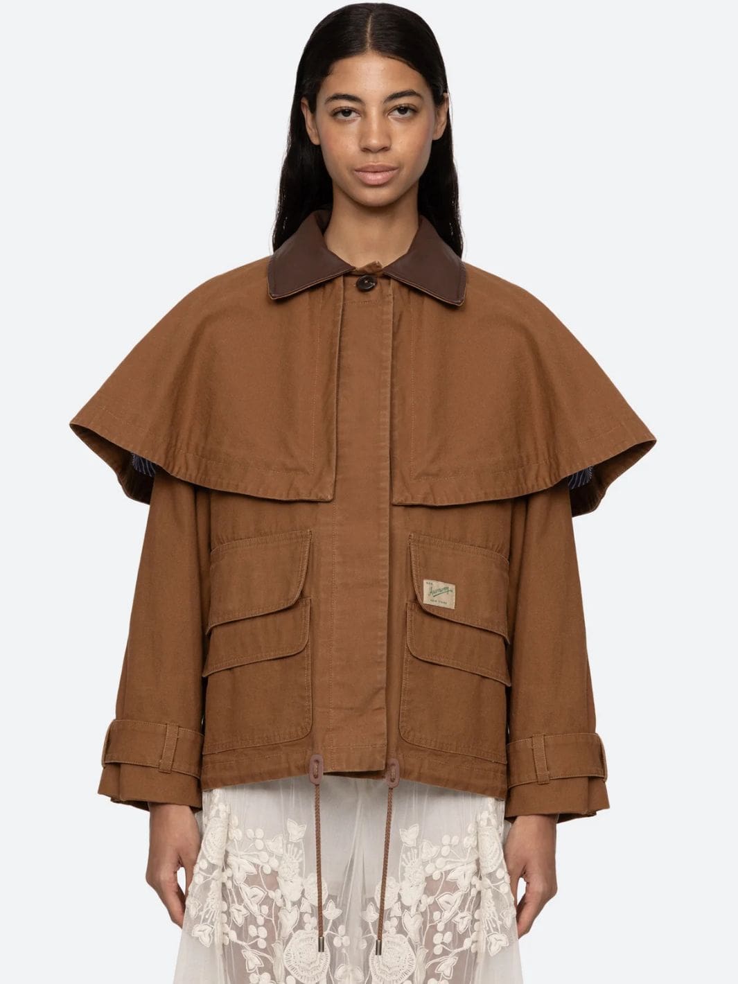 Carolyn-jakken med cape er inspirert av klassiske arbeidsklær, men med en moderne vri. Denne jakken har en unik fargeprosess som gjør at ingen jakker er helt like, så du kan være sikker på at du har et plagg som er helt ditt eget.