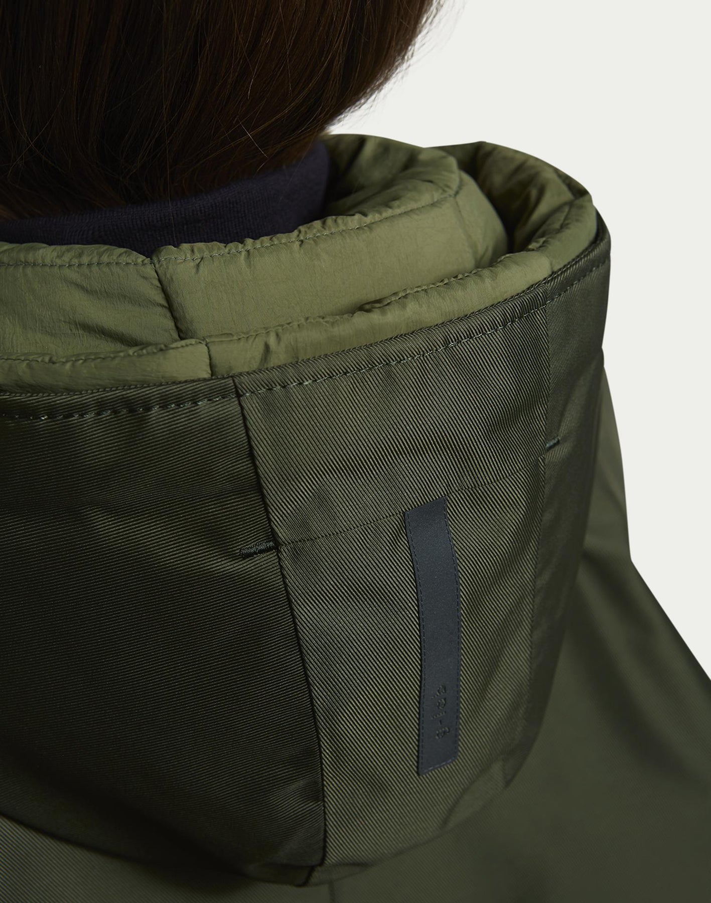 Dette er din mest komfortable, allværs parkas som du enkelt kan slenge på deg når du går ut døren. Laget av vårt signaturstoff med høy ytelse, «silk feel», sørger FLOWs lette vattering for god komfort når de første kalde dagene kommer. Den er løst passformet og har en fast hette med avtakbart termofôr.