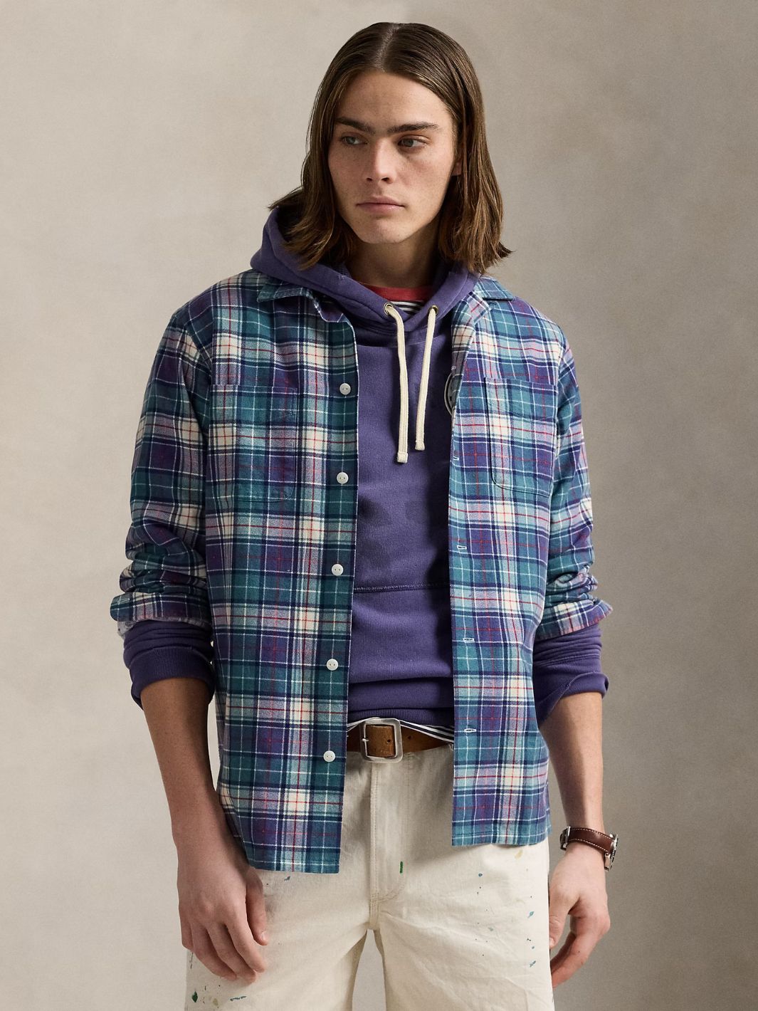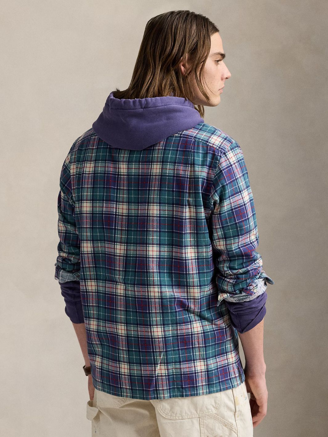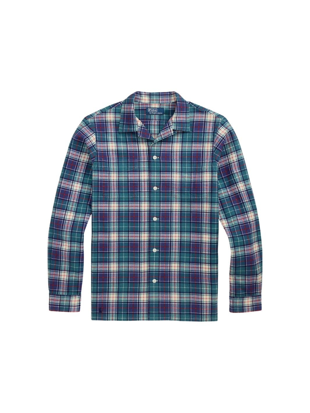 Rutete flanellskjorte med klassisk passform i en delikat fargekombinasjon av grønt, blått, hvitt og rødt.