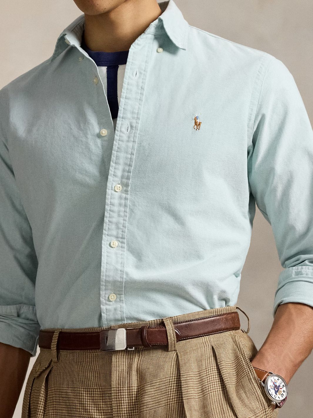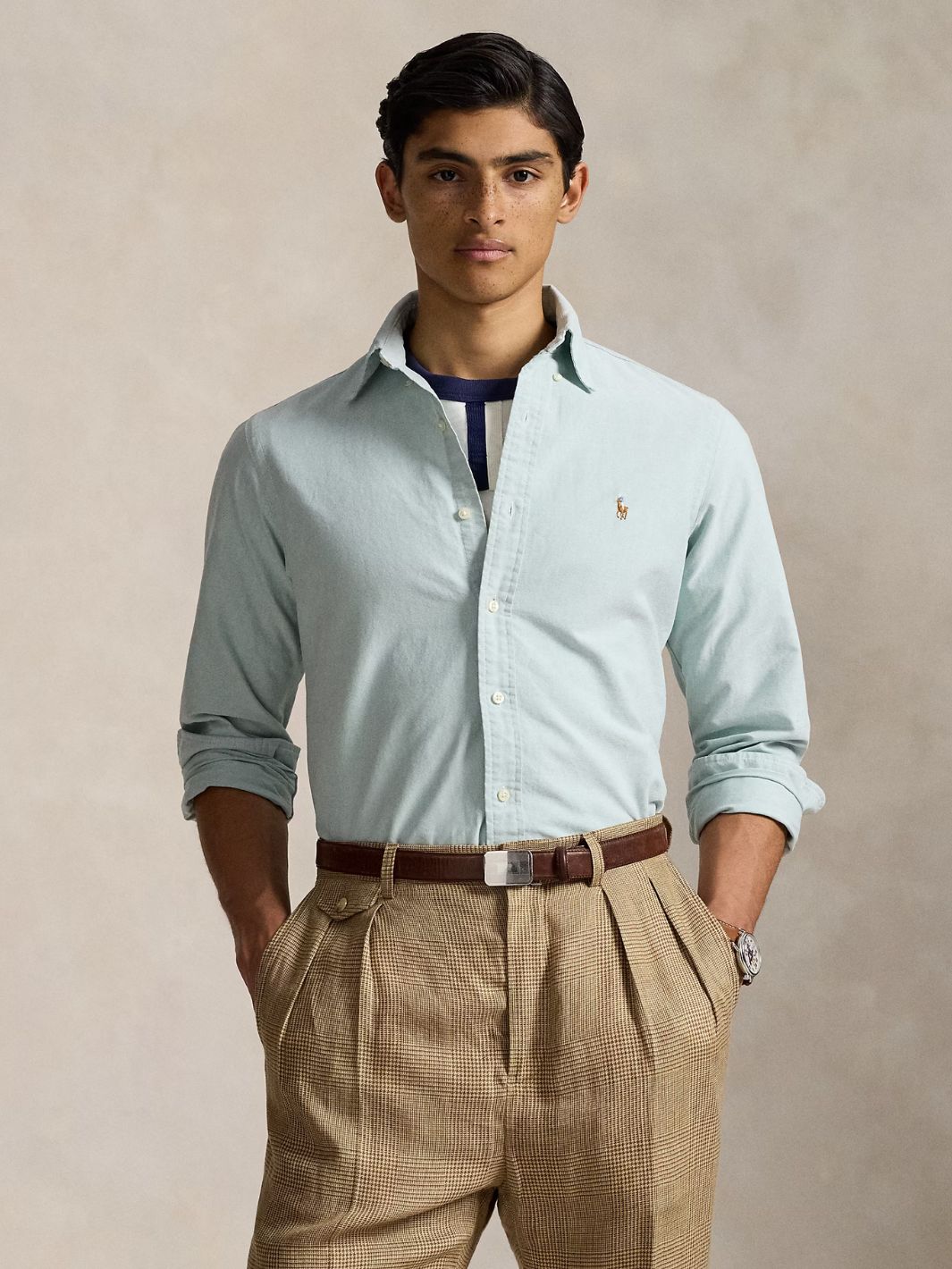 Custom Fit Oxford Shirt i fargen Lovat er en klassisk og ikonisk Oxford-skjorte fra Ralph Lauren i en delikat lys grønn farge. Skjorte med custom / slim fit, button-down krage, lange ermer med mansjetter og knappestolpe. Den har et ryggstykke med boksfold som sikrer en komfortabel passform.
