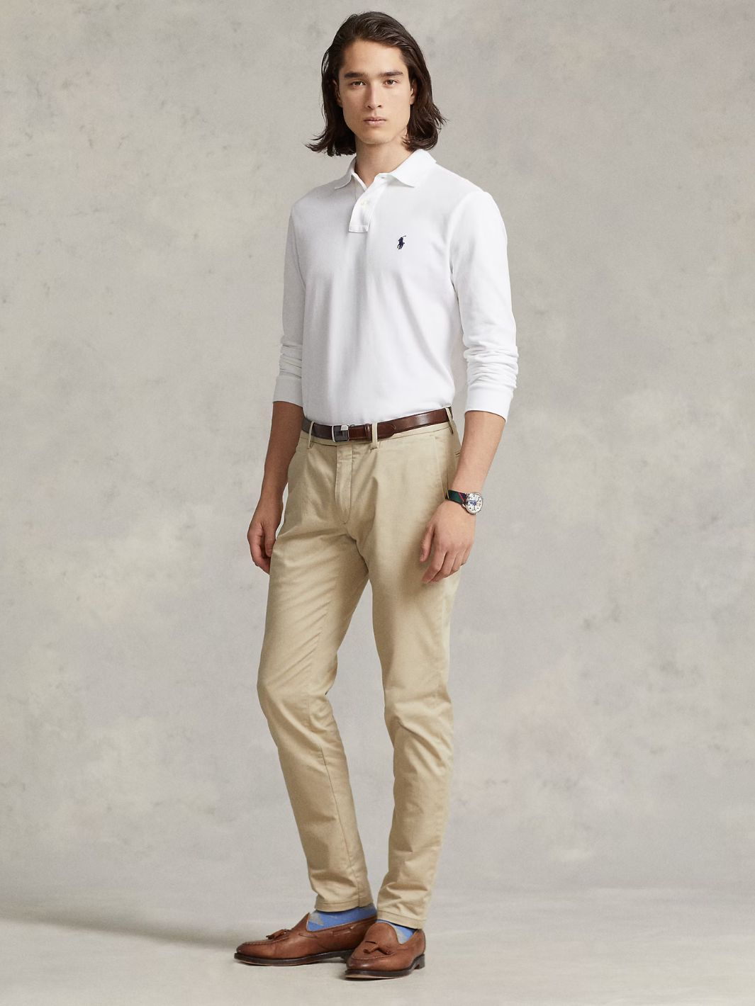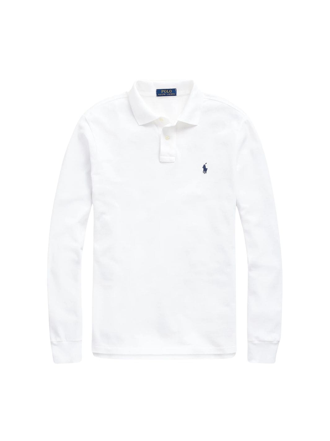 Hvit klassisk slim fit poloskjorte med lange ermer.