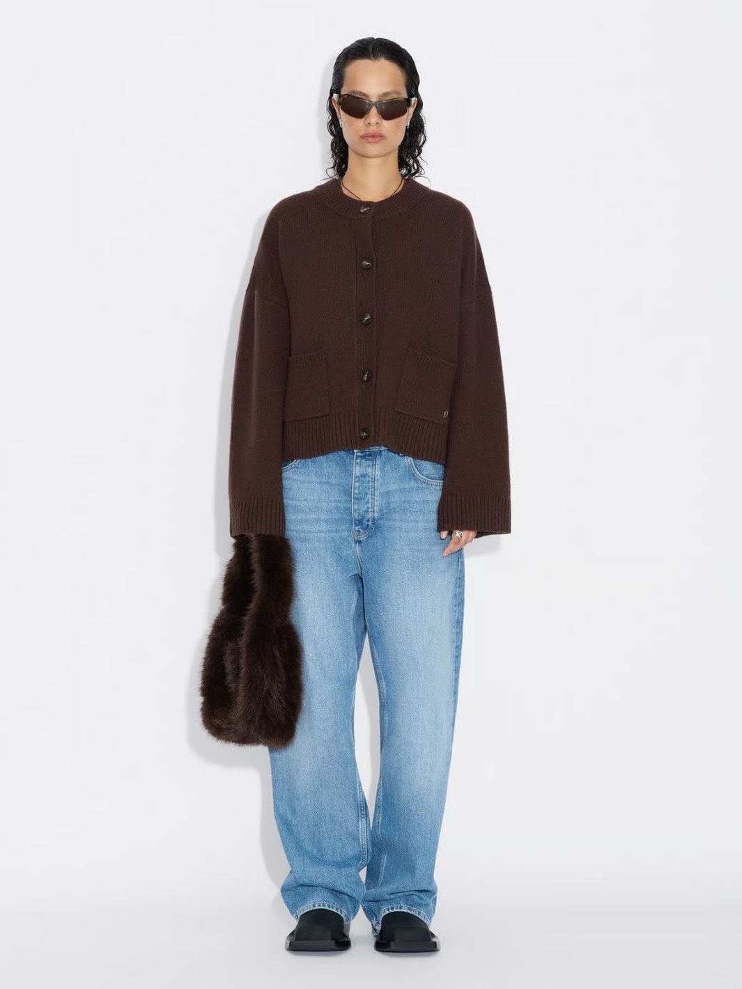 Cardigan | Wool Wide Cardigan Dk Brown