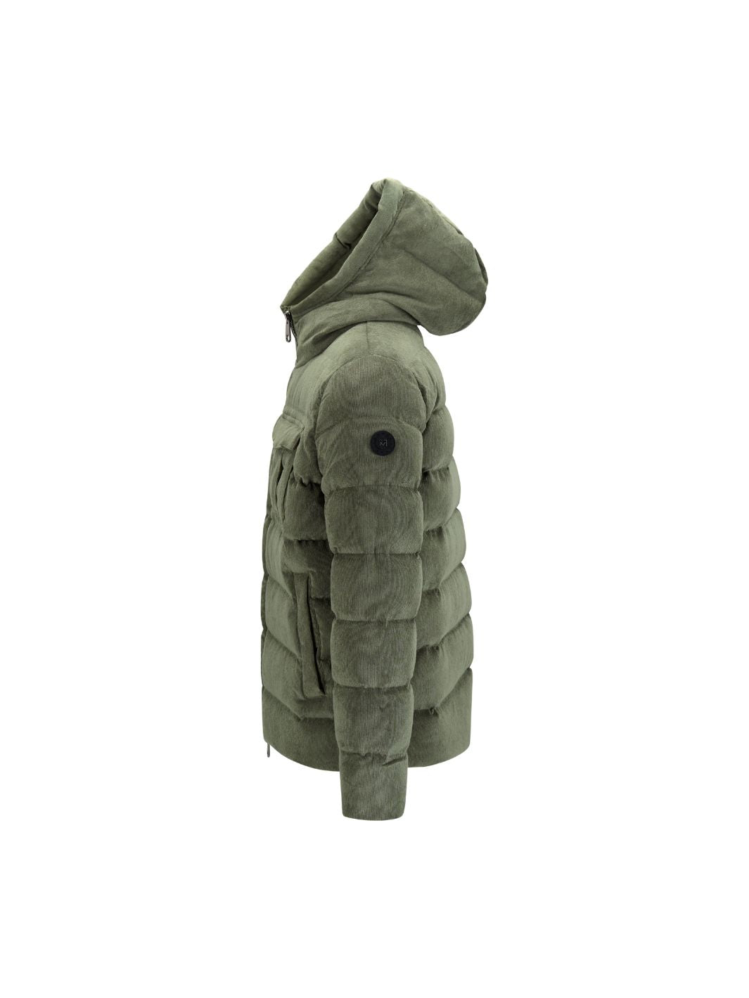 Tignes Dusty Olive fra Monel er en preppy dunjakke med hette til herre i kordfløyel. En varm og god jakke med to brystlommer med klaff, toveis glidelås, sidelommer med glidelås og mykt fleecefôr.