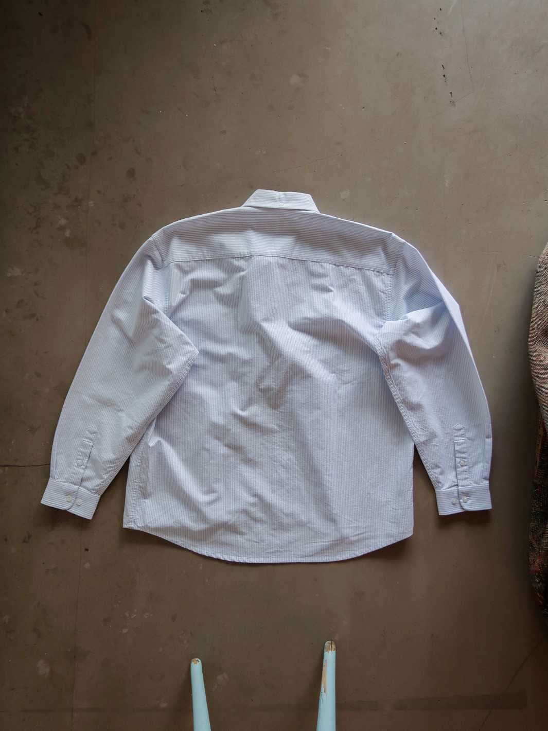 Unisex skjorte med vertikale lyseblå striper med oversized passform laget i kvalitetsrik oxford bomull. Skjorten har button-down krage, klassisk knappestolpe og mansjetter. Skjorten er designet med brystlomme på venstre side med Hotel Lion-logo.
